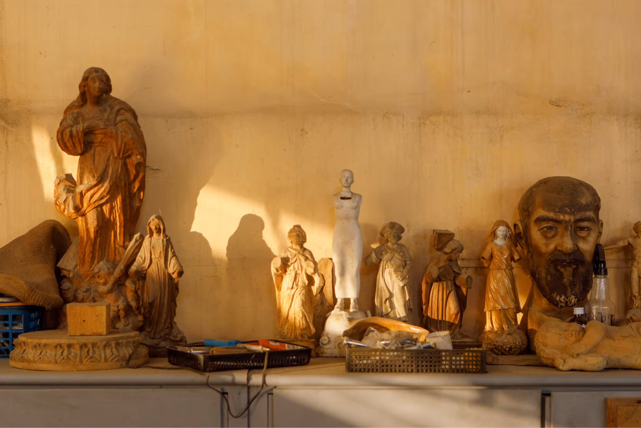 From this capital, trophies, religious images, and souvenirs are made. For a craft that produces highly exalted pieces, it begins in such a modest workshop in the town.